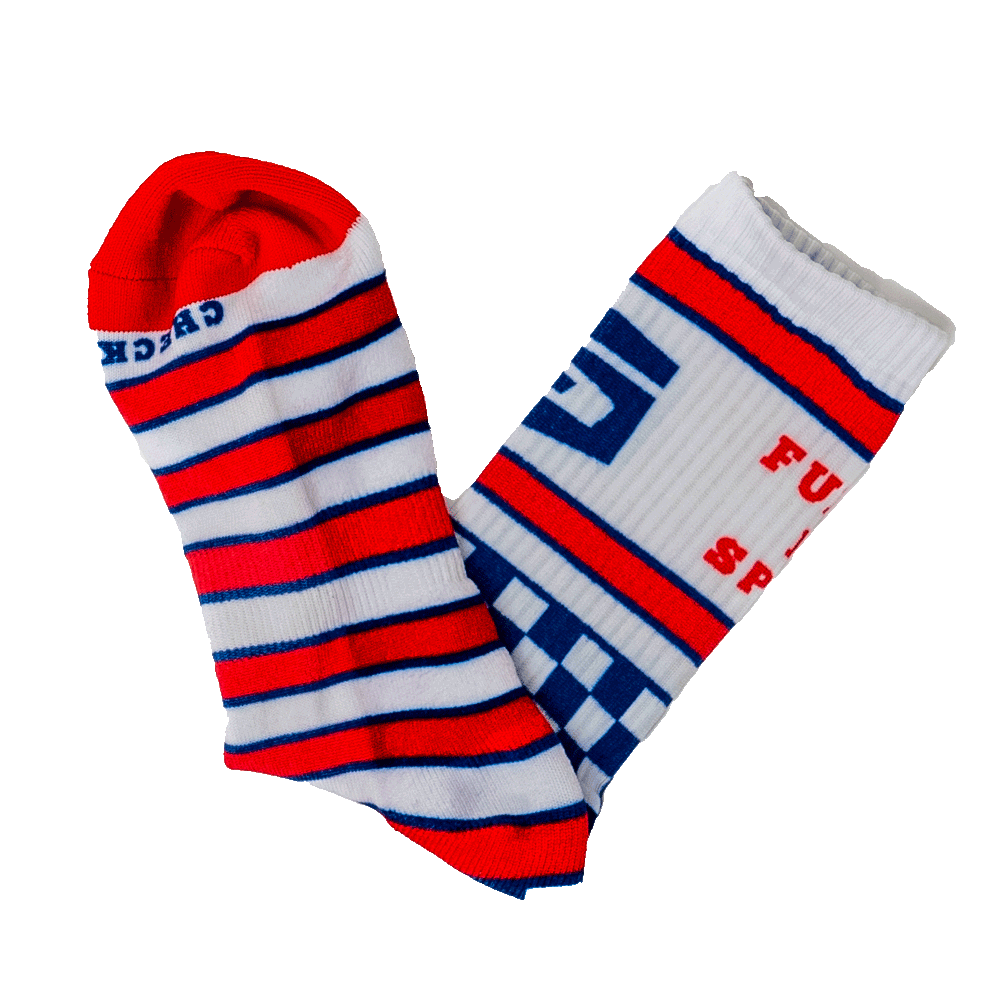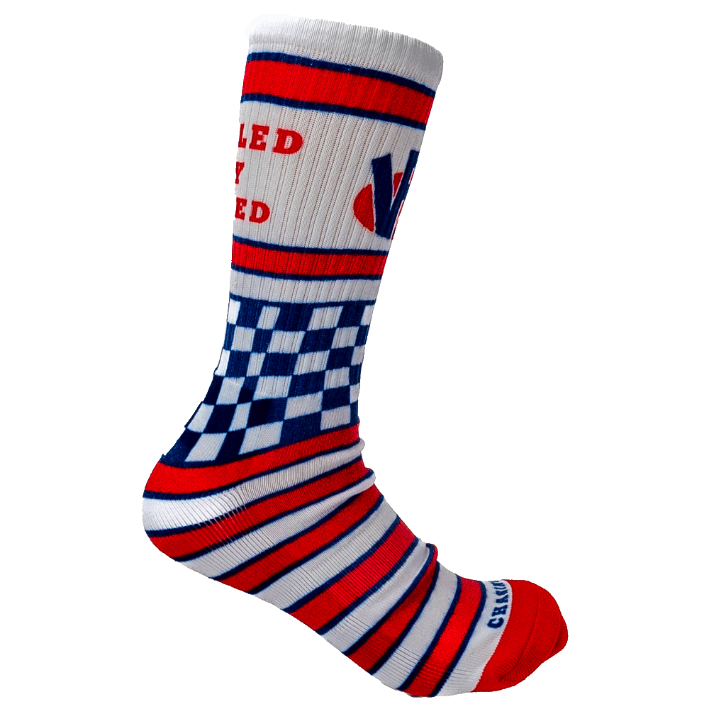 We’ve collaborated with VP Racing Fuels the undisputed world leaders in fuel technology to bring you “Chasing Checkers” crew socks! Chasing Checkers is themed after doing whatever it takes to win and chase the checkered flag. The art direction focuses on the vintage look and feel of the VP Racing brand and its racing heritage dating back to the 1970s.