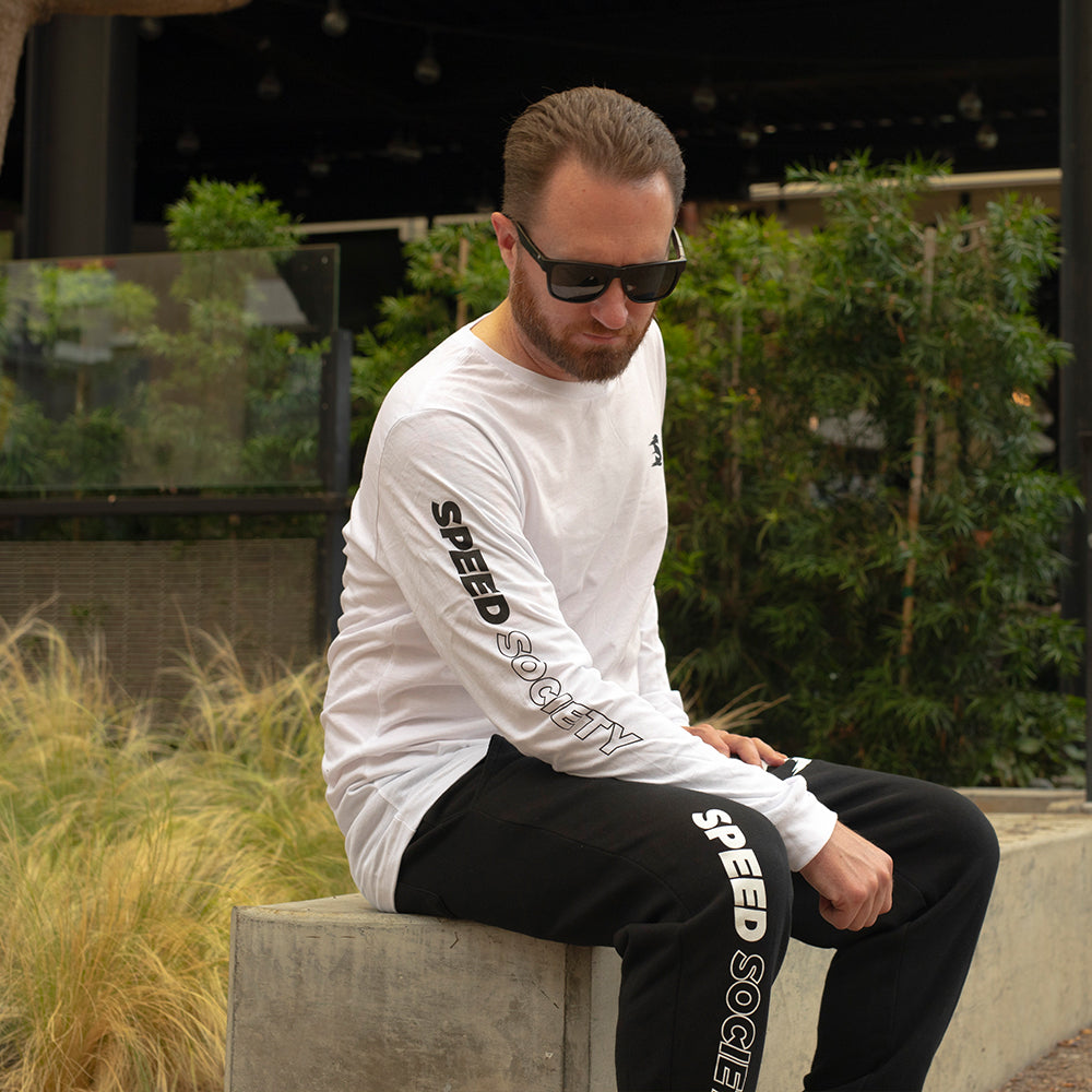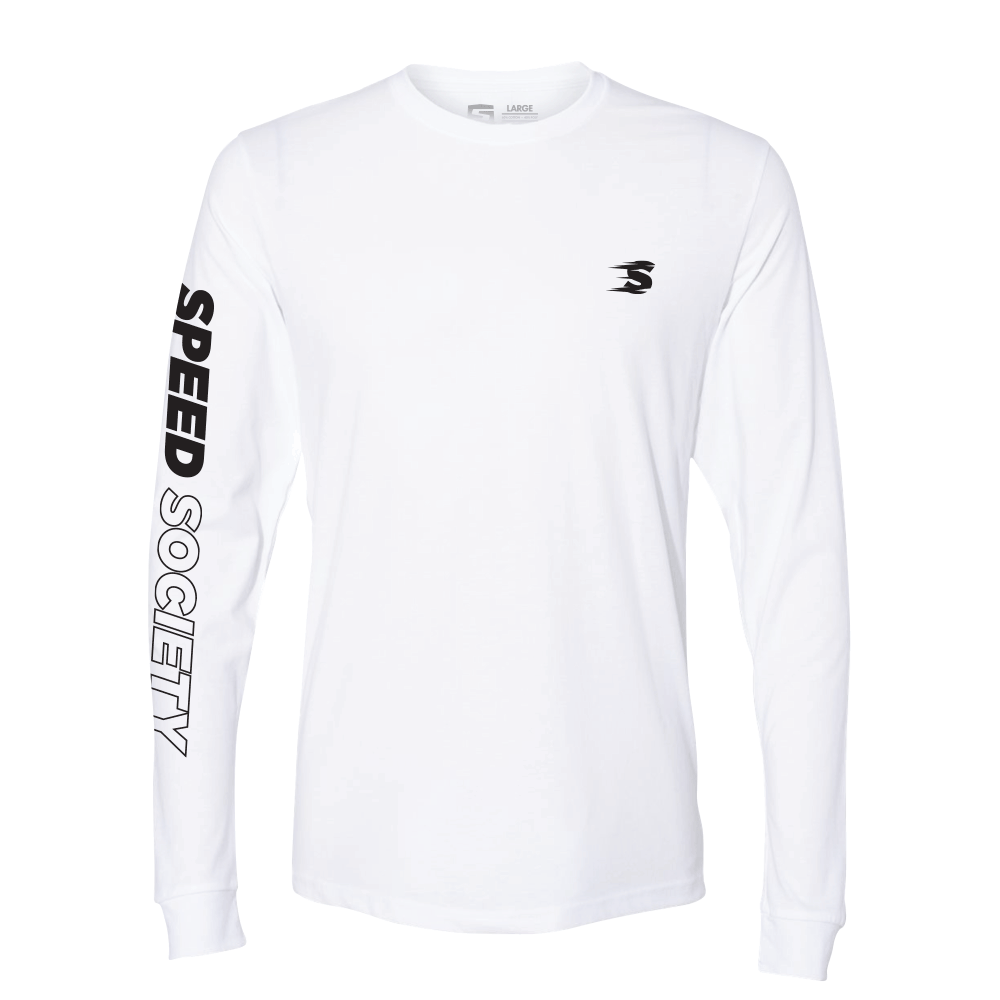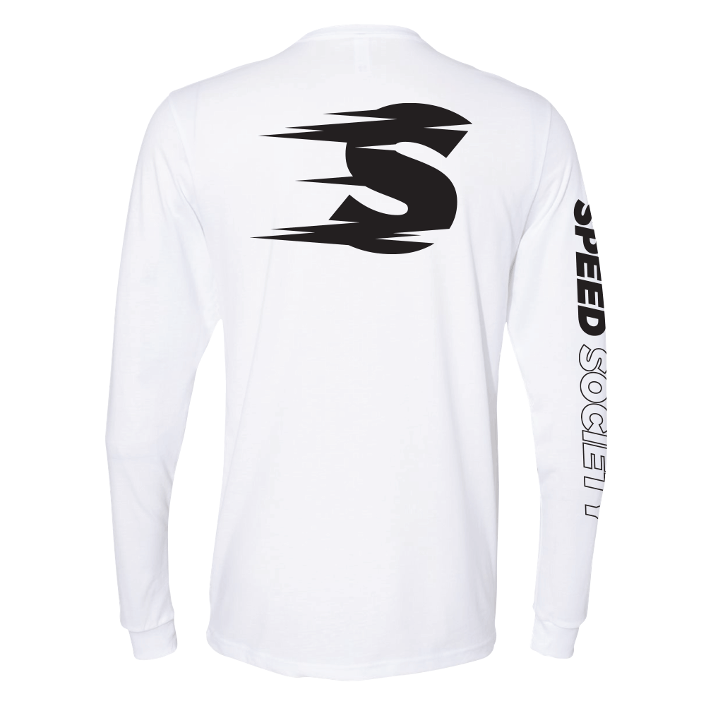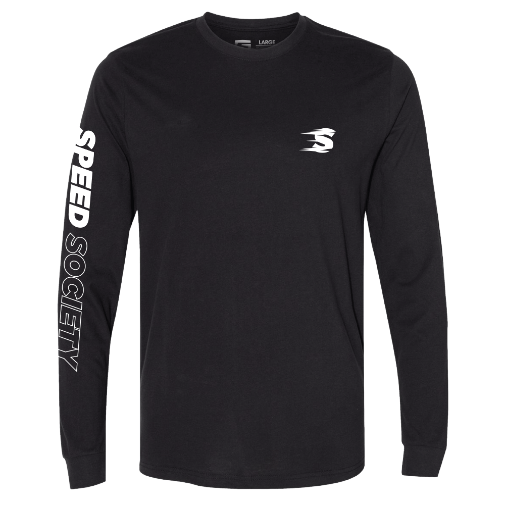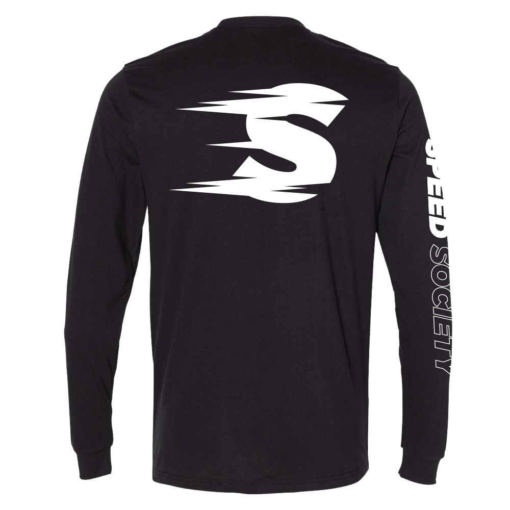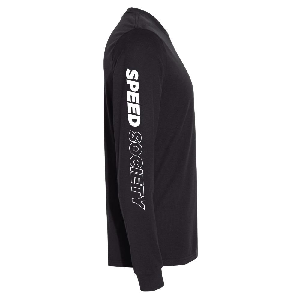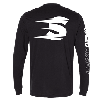This shirt features the small Speedline 'S' design on the front chest and a large Speedline 'S' design on the back along with a blocked and hallowed "Speed Society" sleeve text.