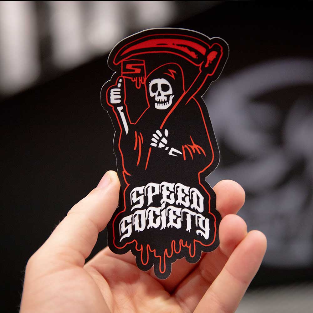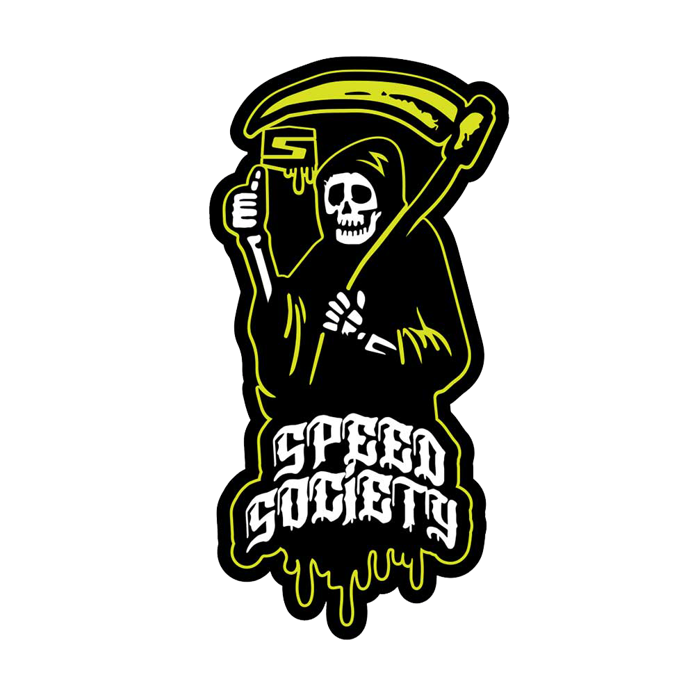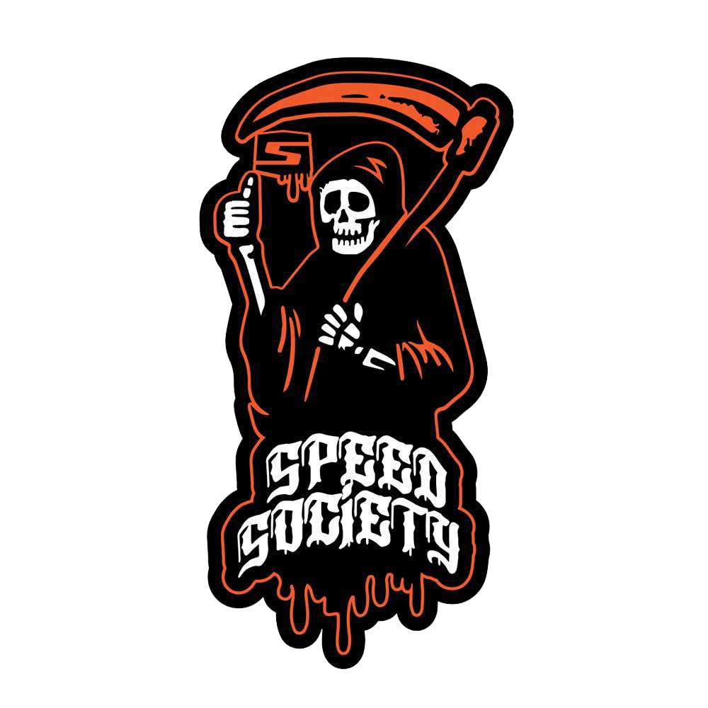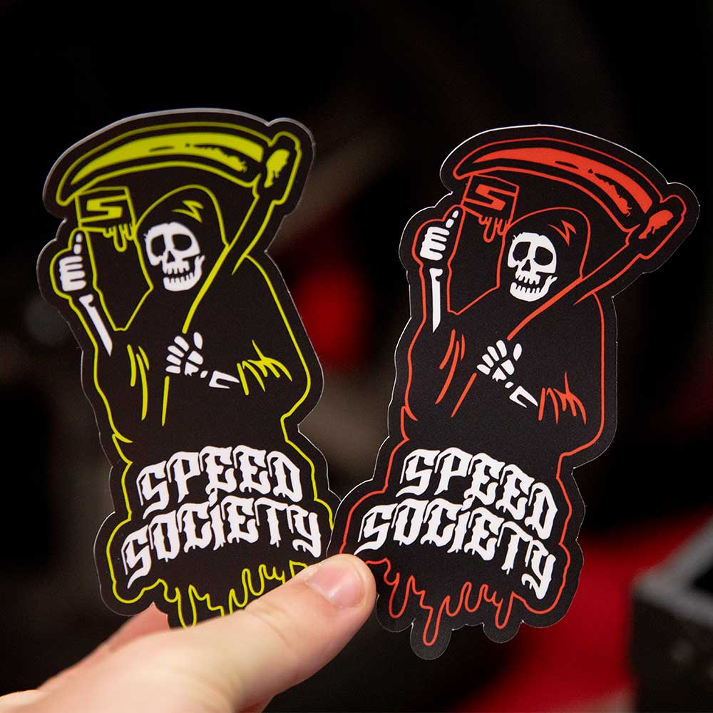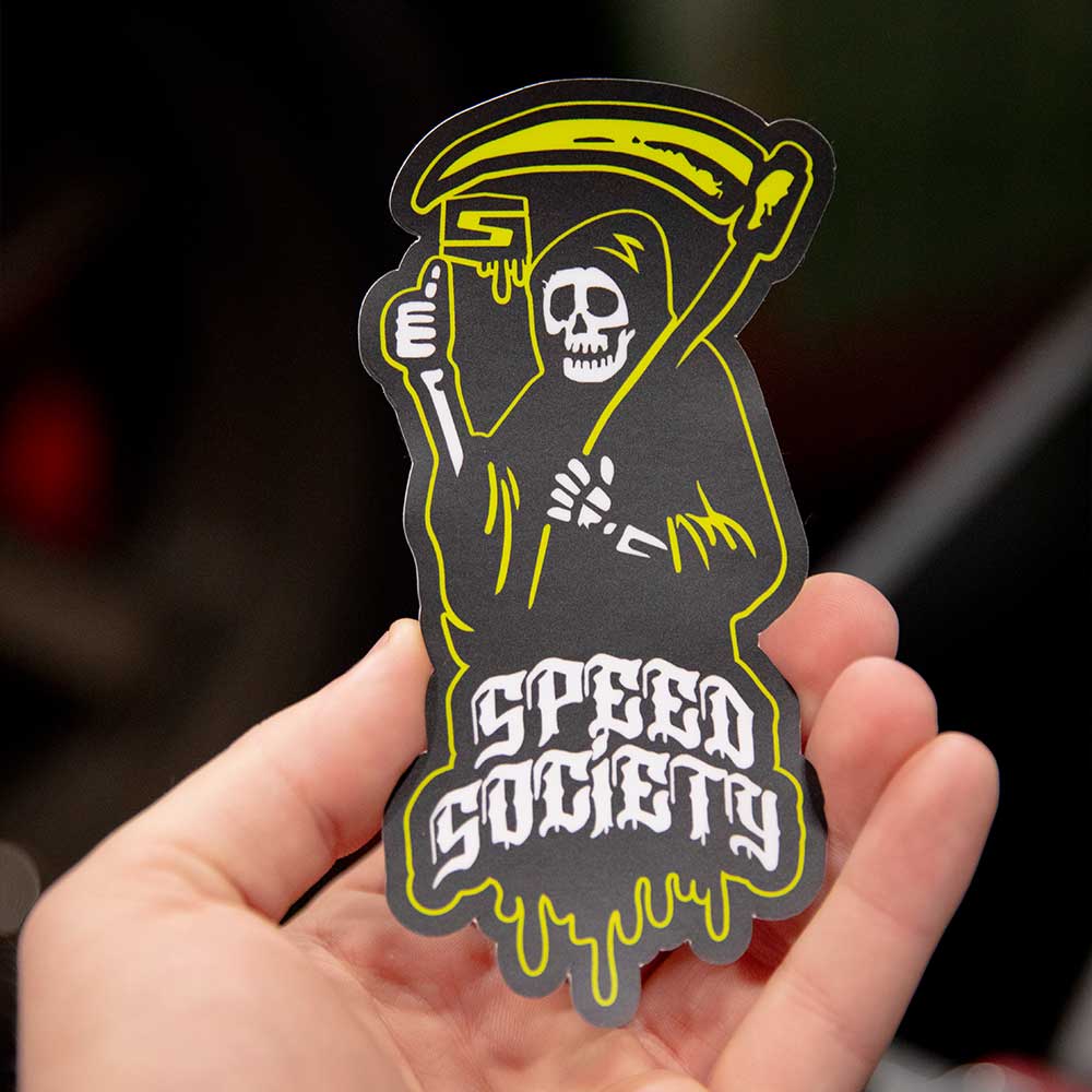 Take a walk on the wild side with Speed Society's "Grim" decal design. Warn your opponents that their cars will be seeing the Grim Reaper after you blow their doors off. Our stickers have been known to add +15 HP but results may vary.